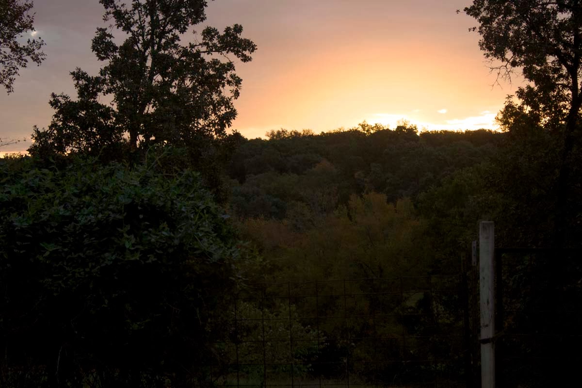Then I walked to the back and saw the sun kissing the trees at the back of the pasture: